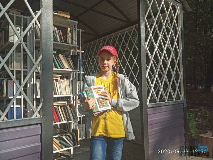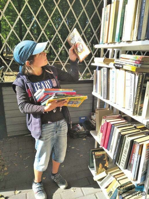 Это библиотека, в которую может прийти каждый и почитать на свежем воздухе. Там бывает много посетителей! Если какая-то книжка очень понравилась, ее можно взять домой, но взамен нужно принести другую — чтобы полки пополнялись.
