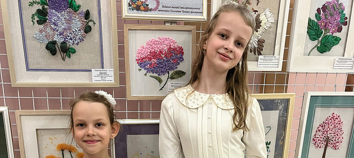 Сёстры Лида и Надя Дроздовы из школы № 46 ходят в кружок вышивки и бисероплетения «Фантазия» во Дворце творчества «Янтарь».