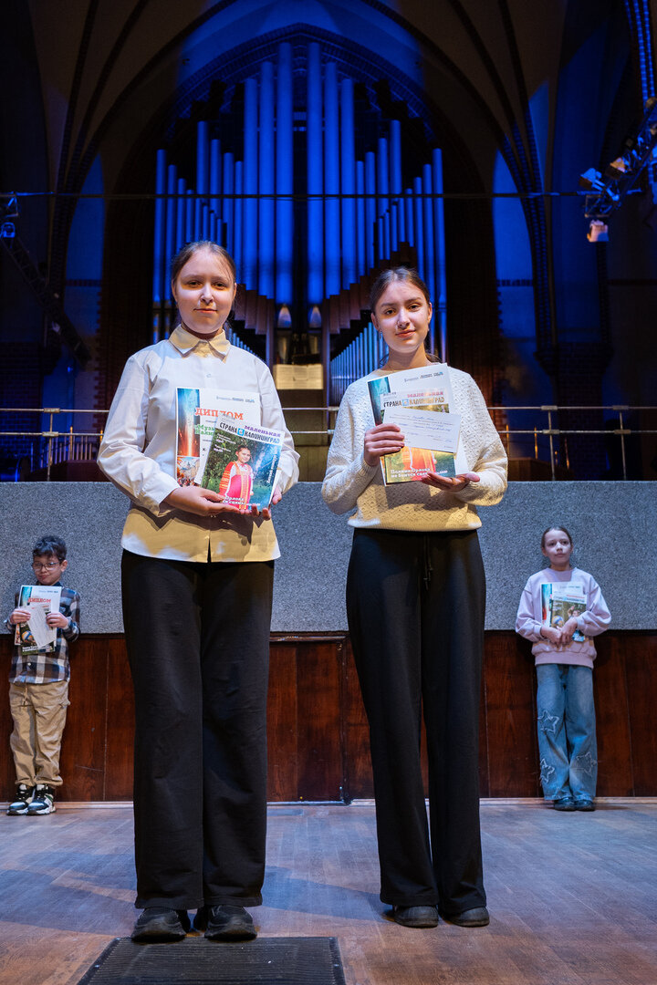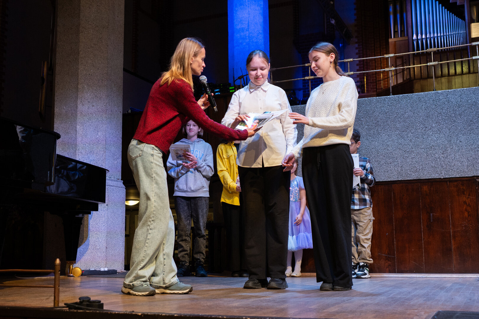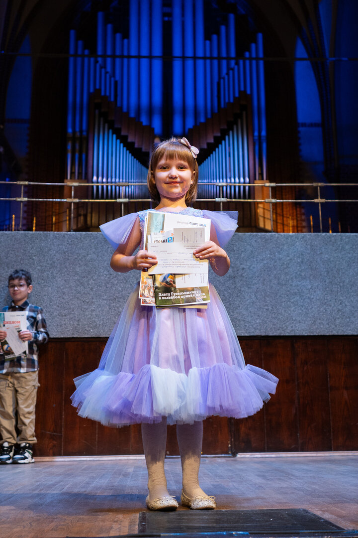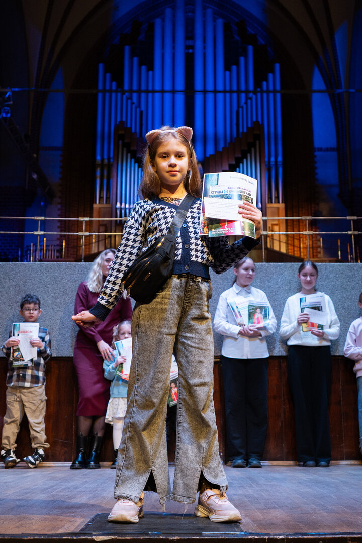 Торжественное награждение победителей прошло в историческом концертом зале. Кроме подарков (ребята получили билеты в Филармонию и фирменные дипломы) их ждал эксклюзивный концерт. Под красивыми сводами звучал орган. И на нем исполнили не только классику, но и музыку из любимых мультфильмов, например, из «Ну, погоди!».