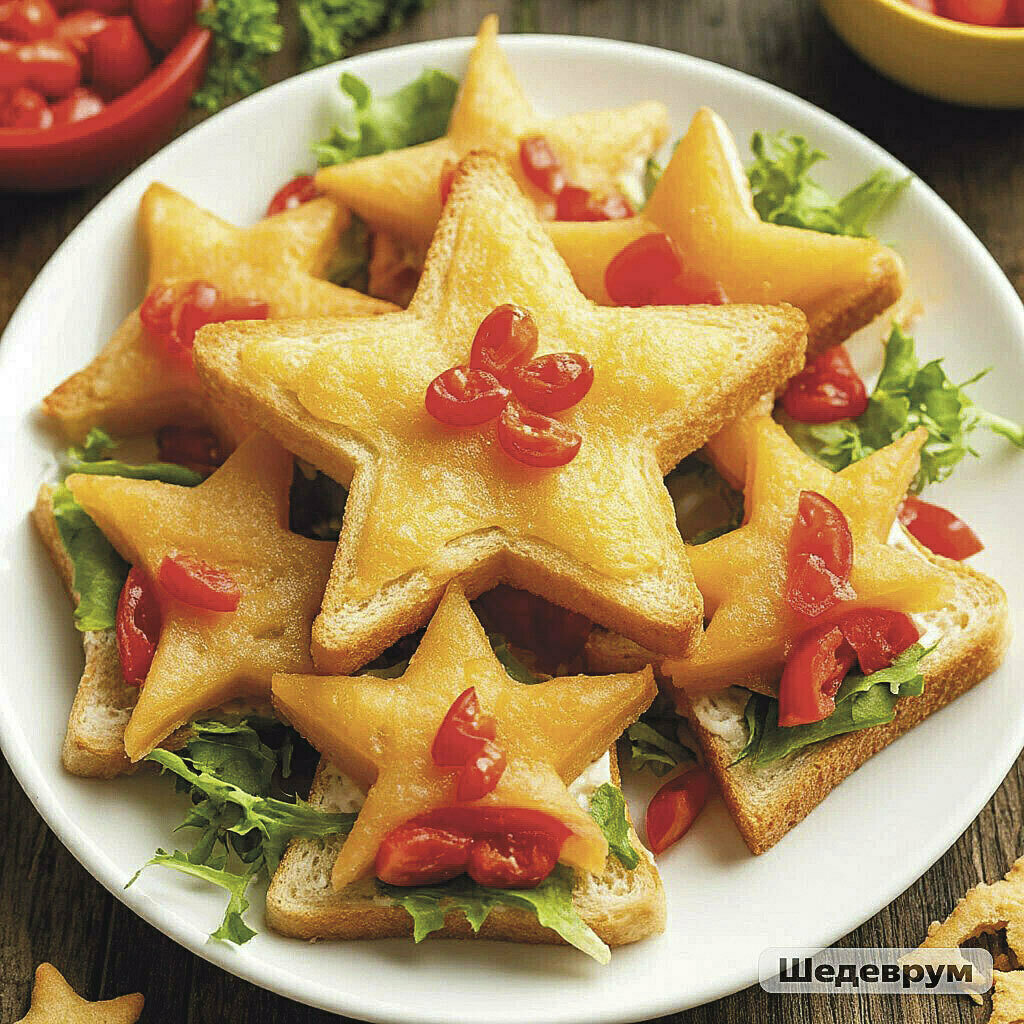 Попробуй приготовить привычные блюда, но сделать их праздничными. Например, фрукты на тарелке выложи в форме ёлочки, а хлебу для бутербродов придай форму звёздочек. Или сделай что-то особенное.