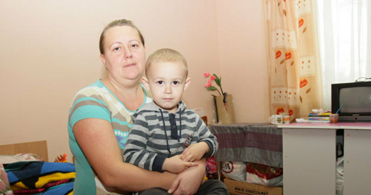 Стадницкие приехали из Донецка месяц назад. Глава семьи, сварщик, как только получили статус временного беженца, нашел работу. А Елена сидит дома с сыночком Ярославом (2 года 8 мес.). Дочь Диана ходит в школу.