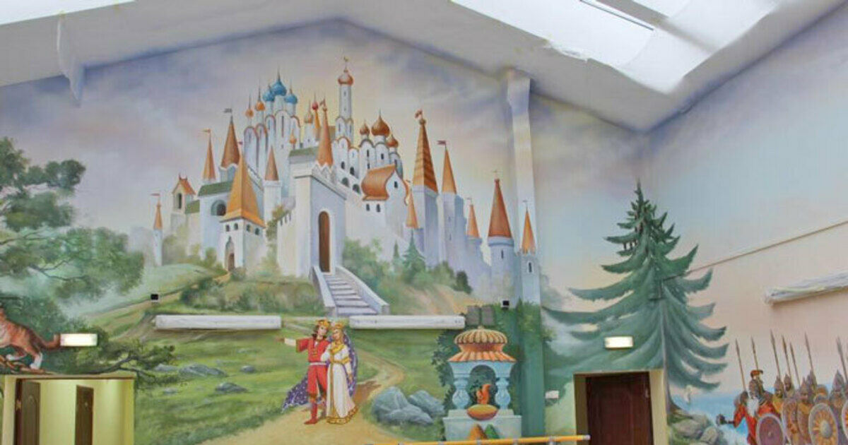 Отличительной особенностью этого здания от его «близнецов», открывшихся в прошлом году на Сельме и в поселке им. Космодемьянского, стало необычное оформление зимнего сада. Его стены расписаны по мотивам пушкинской «Сказки о царе Салтане». К росписи художники приступили в декабре прошлого года, пожертвовав даже новогодними праздниками и выходными. На днях работа была закончена. Зимний сад теперь превращен в сказочное Лукоморье.