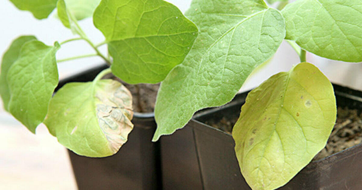 Если это произошло уже с подрастающими сеянцами в горшочках, аккуратно выньте один вместе с комом и осмотрите. Корешки побурели, значит, горшок стал мал (возможно, вы приобрели сильнорослый сорт). Аккуратно перевалите сеянцы в емкости диаметром на 2–3 см больше, подсыпьте плодородной земли с добавлением специального удобрения для томатов и баклажанов (3 столовые ложки на 5 л).