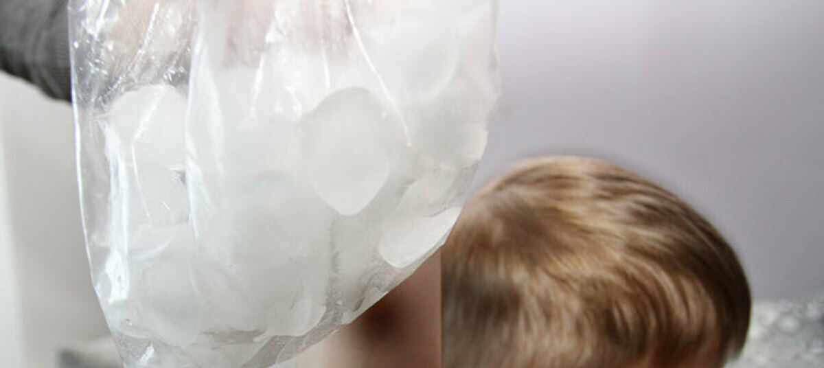 Сначала приложите к ушибленному месту сухой лед (это может быть снег или заморозка из холодильника). Желательно обернуть его марлей или тонкой тканью. Приложить не более чем на 20 минут, затем через несколько минут вновь повторить процедуру, сделать так 3–4 раза. Полезно держать травмированную конечность вертикально, это уменьшит отек. После можно применять рассасывающие мазы и гели (продаются в аптеке).