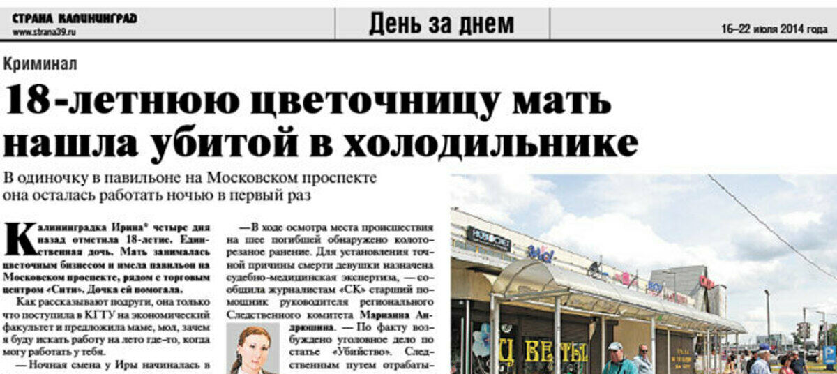 18-летняя Марина в ту ночь вышла на смену без всякого принуждения. Недавняя выпускница, она сама попросила маму – хозяйку павильона поставить ее на работу. При себе у девушки были телефон и ноутбук, мама и дочка собирались созваниваться, постоянно общались в социальных сетях. Формальных поводов для беспокойства у Ксении Александровны, как у работодателя, не было: павильон был оборудован камерой видеонаблюдения и тревожной кнопкой. А вот материнское сердце почувствовало неладное – рано утром она приехала на точку и обнаружила дочь убитой.