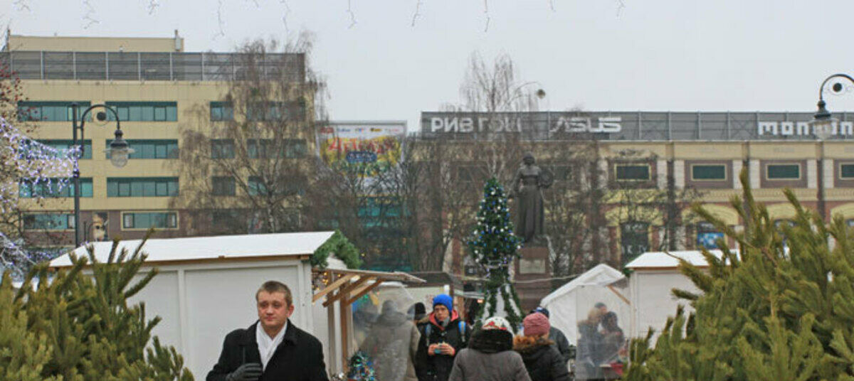 - Площадь у Дома Советов. По 31 декабря с 8.00 до 21.00 – елочный базар, предновогодняя торговля подарками и продукцией местных производителей. Дети могут покататься на аттракционах.