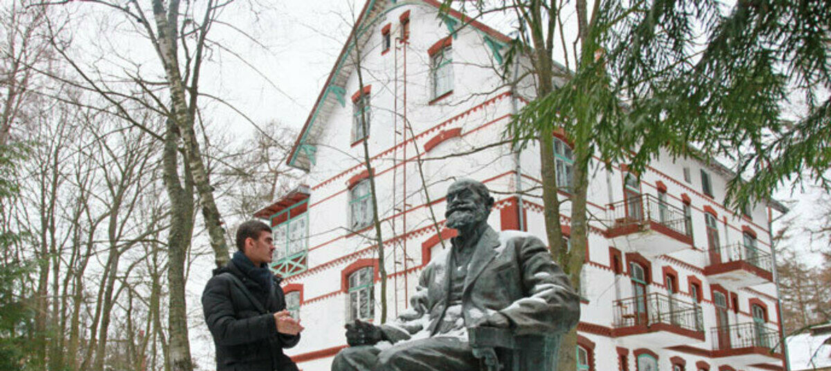 Среди этого разнообразия притулившаяся на задворках курортного Светлогорска статуя немолодого, сидящего на стуле мужчины с бородой выглядит несколько бледновато. Однако именно она, возможно, является самой загадочной в наших краях.