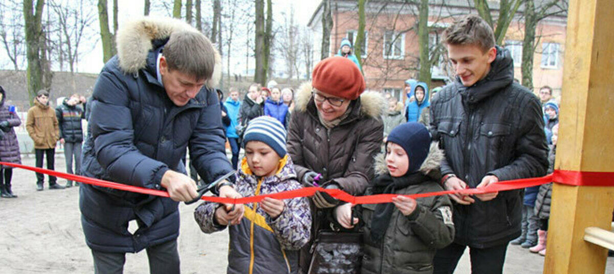 Андрей Кропоткин разрезал ленточку вместе с воспитанниками детсада и учениками
