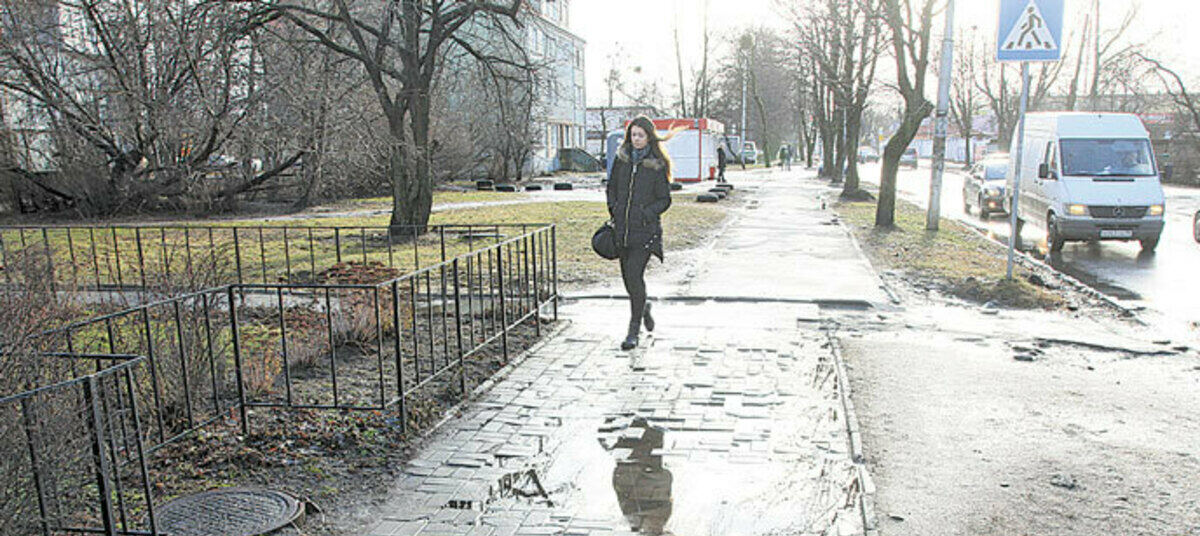 «Вроде не так давно на улице Нарвской, возле дома № 68, коммунальщики выложили новую тротуарную плитку. Сегодня это уже «мозаика» из осколков. Ходишь, спотыкаешься и удивляешься, почему коммунальные власти нанимают для дорожных работ и благоустройства бракоделов и халтурщиков?!»Мария Яковлевна, Калининград