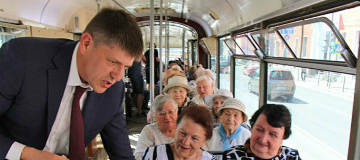 Андрей Кропоткин показал город ветеранам из окна ретротрамвая