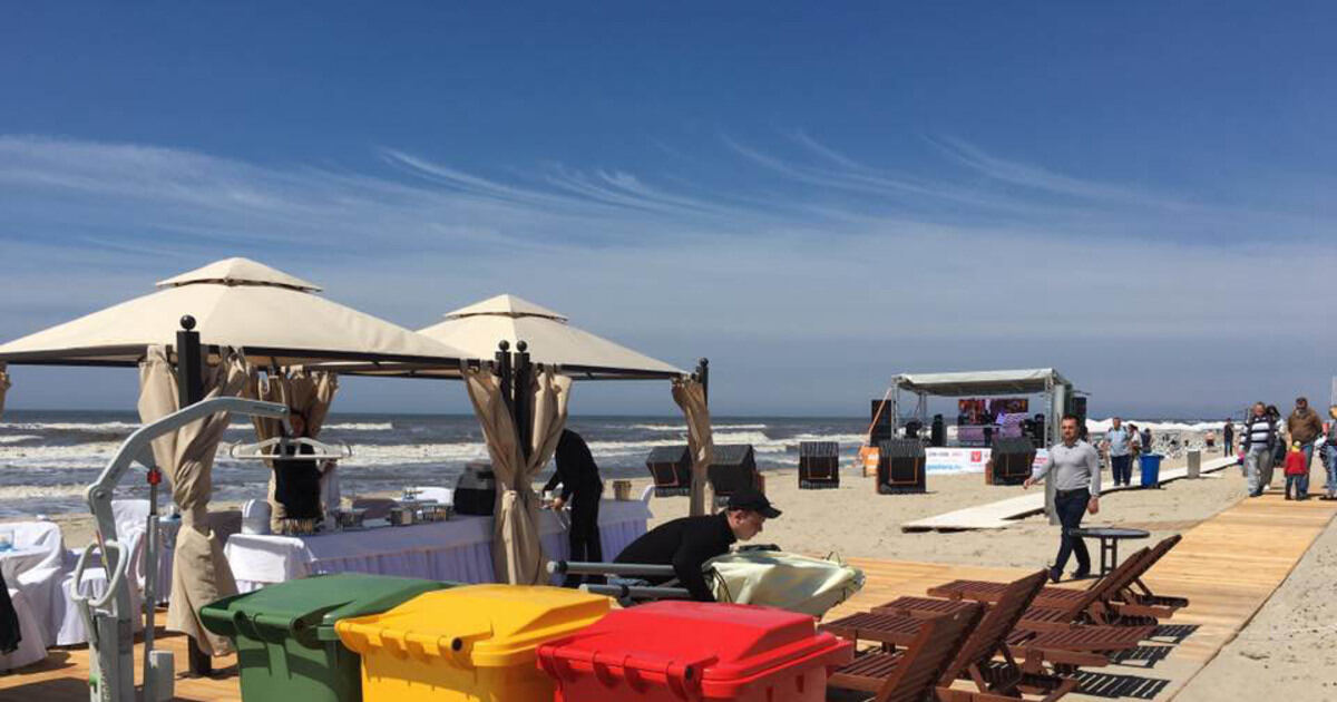 Фишками пляжа также стали спортивные тренажеры с видом на море и детская площадка.