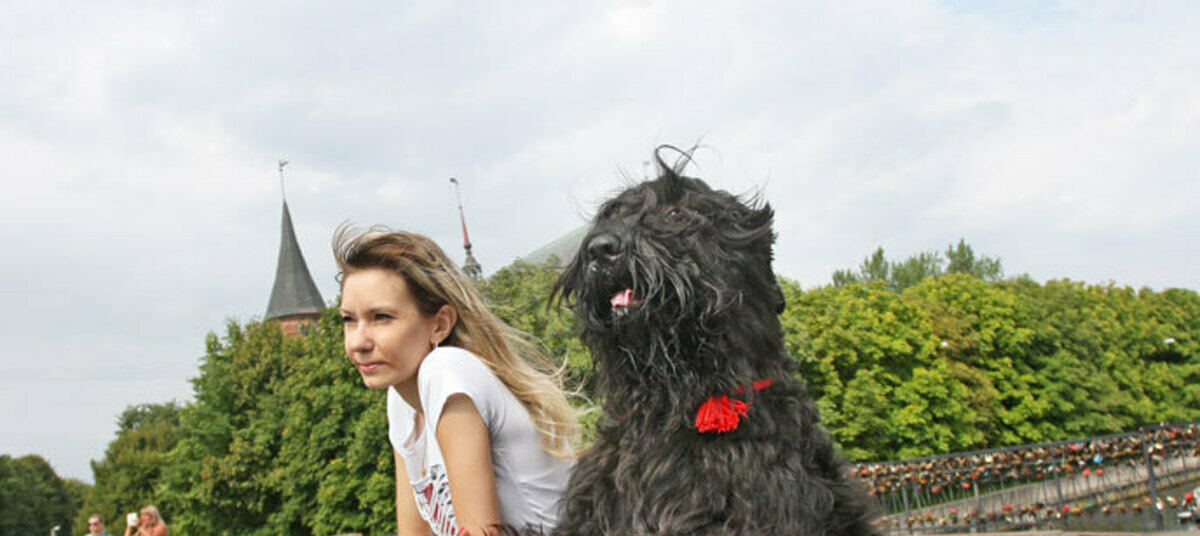 В нашей области живут более пятидесяти представителей этой породы. Один из них, четырехлетний красавец по кличке Грэй Отважный Победитель (уже не раз титулованный, у животного больше 10 наград, полученных на российских и международных выставках. – Прим. авт.), живет в семье супругов из Калининграда Анастасии и Кирилла Родионовых. А начиналась история их дружбы с того, что в один прекрасный день, осенью 2012 года, Кирилл, строитель по профессии и охотник по призванию, решил приобрести маленькую охотничью собачку фокстерьера, но запутался в «терьерских» породах и вместо этого купил русского черного терьера. Ошибку муж понял только после того, как заводчица, получив деньги и передав щенка, предложила взглянуть на его мать – огромную статную красавицу.