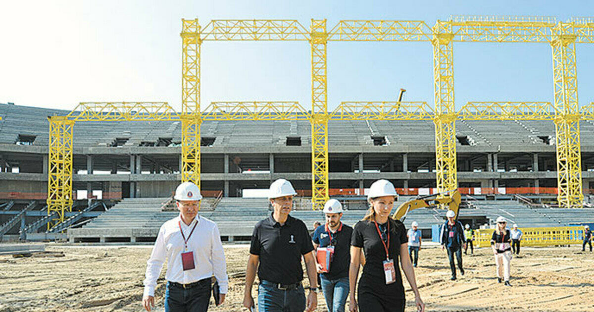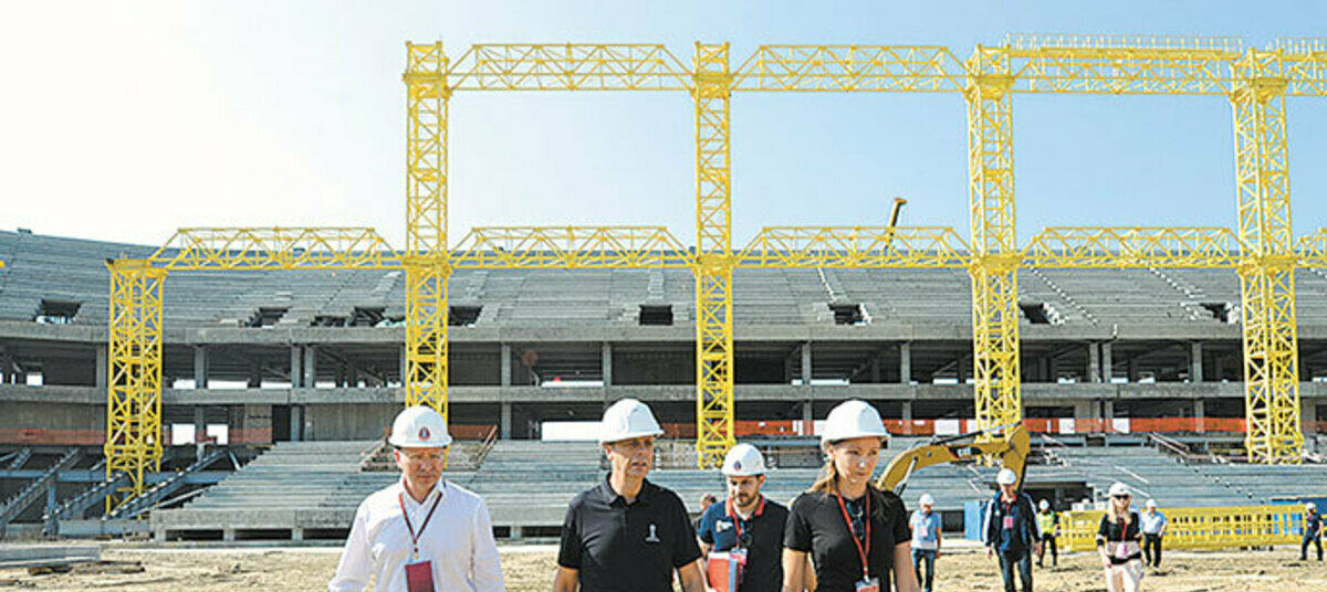 Делегация во главе с гендиректором Оргкомитета «Россия-2018» Алексеем Сорокиным и директором департамента FIFA по проведению соревнований и мероприятий Колином Смитом посетила строящийся стадион на Острове.