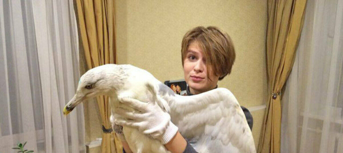 – Во время прогулки около одной из пятиэтажек я заметила огромную чайку — она сидела на траве, никуда не улетала. Одно крыло было все в крови! Пройти мимо не смогла: взяла ее на руки, пронесла несколько улиц до дома. По дороге Чак (там мы его назвали) исклевал все руки, пришлось прижать голову рукой, укутать в шарф. Дома первым делом с мужем сделали чайке гнездо в корзине — сено забрали у нашего домашнего декоративного кролика. И стали искать, в какую клинику обратиться (в городе мало кто берется за осмотр и тем более лечение диких животных и птиц), – рассказала Даша.
