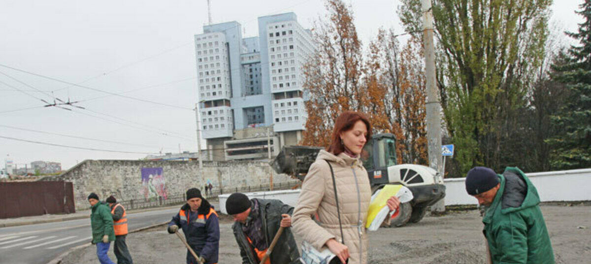До наступления серьезных холодов в городе еще ремонтируют тротуары. В том числе у Дома Советов