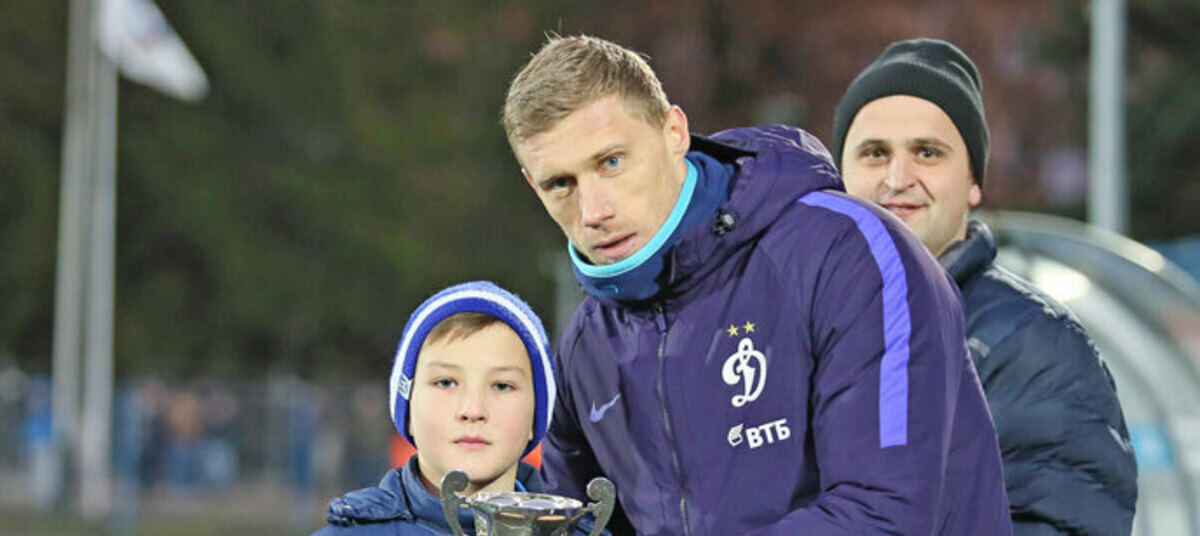 Обладатель Кубка УЕФА, экс-игрок сборной страны Павел Погребняк наградил в перерыве матча калининградских мальчишек и победителей мужского чемпионата города, но на поле так и не вышел