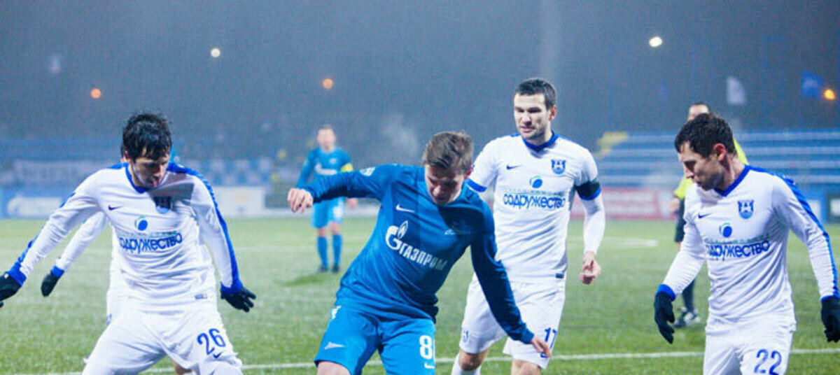 Наши футболисты по-боевому настроились на последний матч года и порой втроем бросались отбирать мяч у зенитовцев