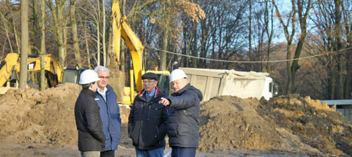 Как сообщил представитель подрядной организации, на объекте уже демонтированы старые постройки, трибуны и ограждение поля. Кроме того, строители провели гидроизоляцию фундаментов хозяйственного и бытового корпуса, фундаментных балок, устройство щебеночного основания под бытовой корпус и хозяйственный блок. Одновременно ведутся работы по прокладке сетей водопровода для полива поля, а также монтируются сети ливневой канализации