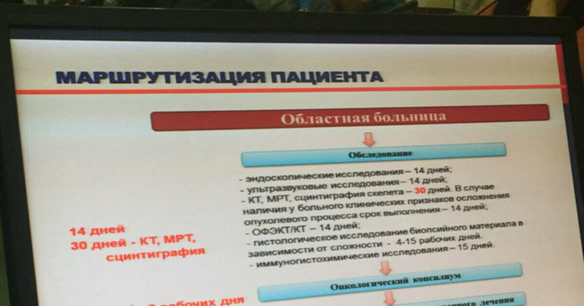 Не позже чем через три дня после завершения обследований пациента должны направить на онкологический консилиум, затем в течение 10 дней госпитализировать в областную больницу либо направить на получение помощи за пределы региона. В случае если что-то будет затягиваться, ответственность понесет главврач больницы, которая допустила нарушение сроков.