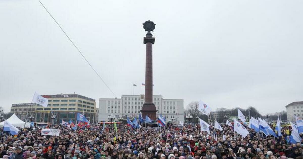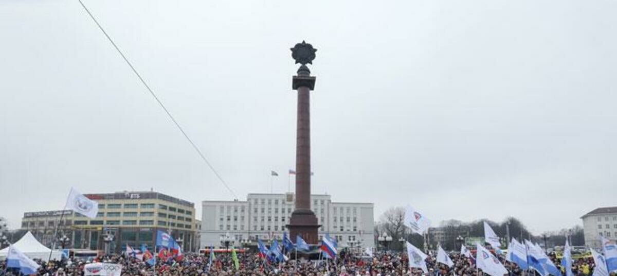 Днем в субботу 3 февраля в центре Калининграда наблюдалось столпотворение. На площадь Победы ручейками стекались людские потоки, а автомобили стояли в гигантских пробках. Однако если водители и прибегали к услугам клаксона, то только в качестве выражения поддержки собравшимся. Здесь проходила акция «Одна страна – одна команда».