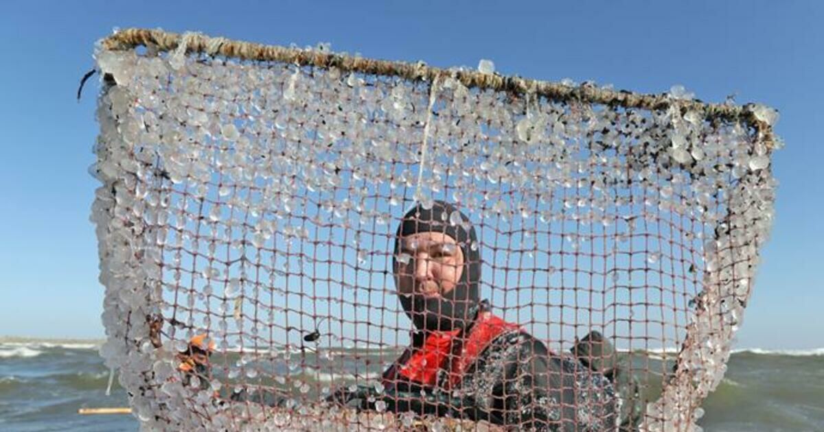 Александр Матвеев фотографировал мужчин, которые ловят янтарь в холодном море в самый шторм