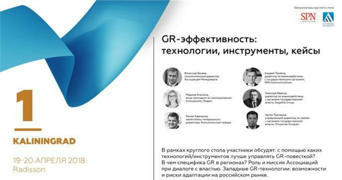 Ассоциация менеджеров и SPN Communications в рамках Международного форума по коммуникациям Baltic Weekend: König Edition 19 апреля проведет круглый стол «GR-эффективность: технологии, инструменты и кейсы». В дискуссии примут участие ведущие специалисты по взаимодействию с органами государственной власти, топ-менеджеры крупных российских компаний и медиа.