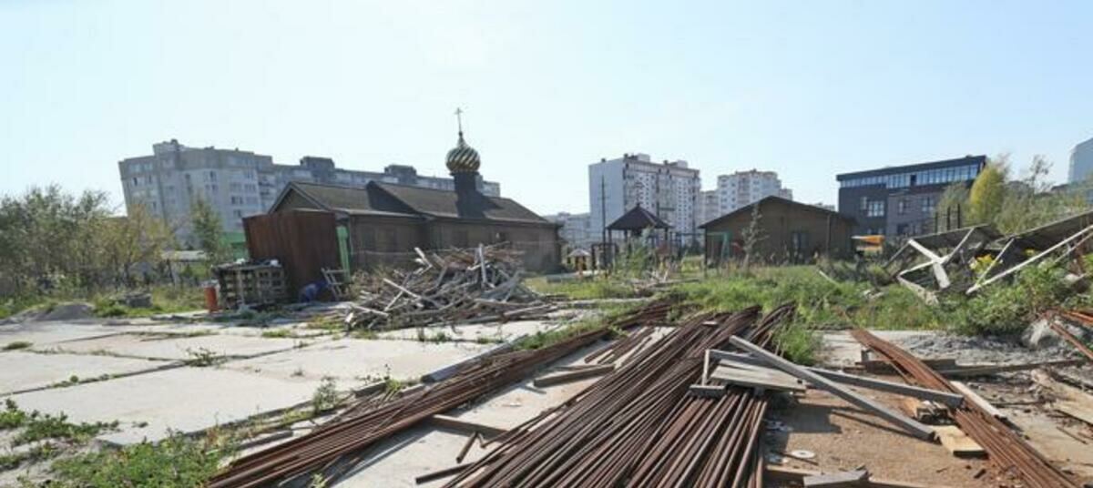 Сейчас территория будущего храма огорожена забором. Активной деятельности пока за ним не наблюдается.