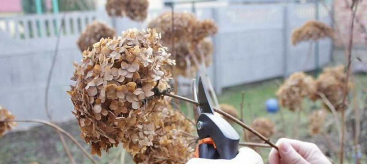 У метельчатых и древовидных сортов на зиму можно удалять только сами цветы-шары, а стебли укорачивать на нужную высоту уже весной либо провести сейчас полную обрезку. Однако весной все равно надо будет удалить подмерзшие и сломанные ветви.