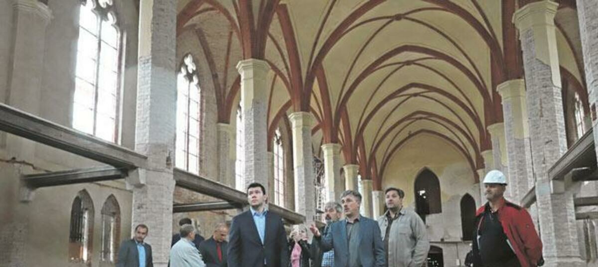 Антон Алиханов проверил, как идут восстановительные работы в кирхе. Здание и сегодня является символом Славского округа