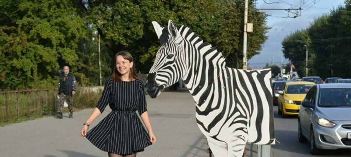 – Устроили мы и флешмоб «Зебра». Переход на этом перекрестке сделан буквой «П». То есть, чтобы перебраться с одной стороны Московского пр-та на другую, надо пройти несколько светофоров и потратить около семи минут! Раньше напротив арт-пространства «Ворота» был прямой переход, его убрали, а он там необходим. Чтобы напомнить об этом, мы сделали макет зебры в натуральную величину, разделили «животное» на две части — и поставили с двух сторон улицы. Как раз в том месте, где людям было бы удобно ее пересекать, – поделилась Вера.
