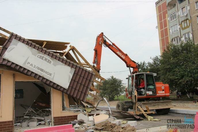 В Калининграде после внесения изменений в законодательство начали массово демонтировать нестационарные торговые объекты и другие незаконные постройки, например автомастерские на территориях садовых товариществ.