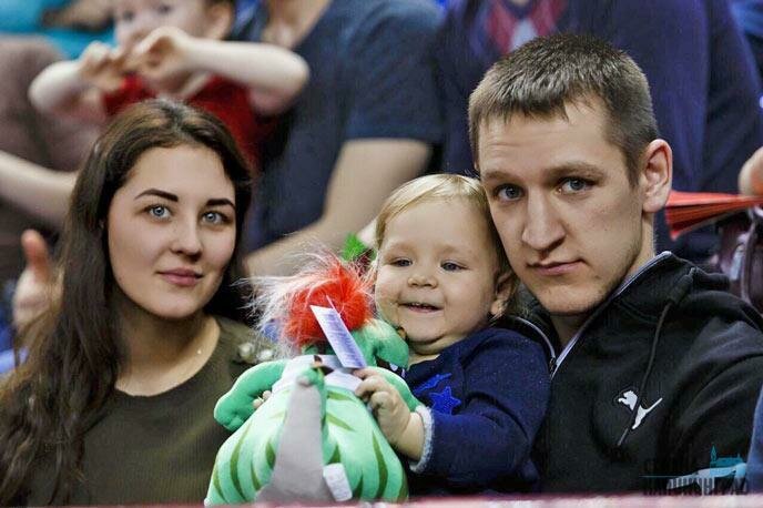 Милана Семенькова с мамой и папой на волейбольном матче, посвященном сбору средств на ее лечение