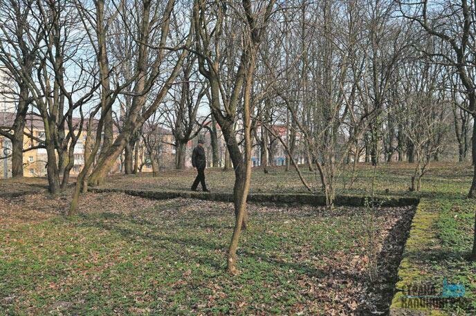 – До наших дней сохранилось несколько объектов, – пояснил Кропоткин. – Там до 1945 года была развлекательная зона. Сверху, где лестница, были теннисные корты. Сейчас там кустарник и небольшие деревья по краям. Но сами квадраты, где были корты, свободны.