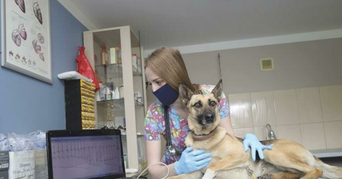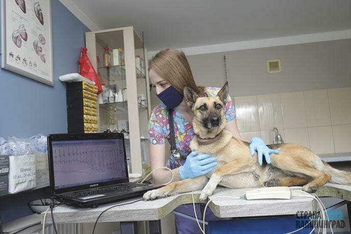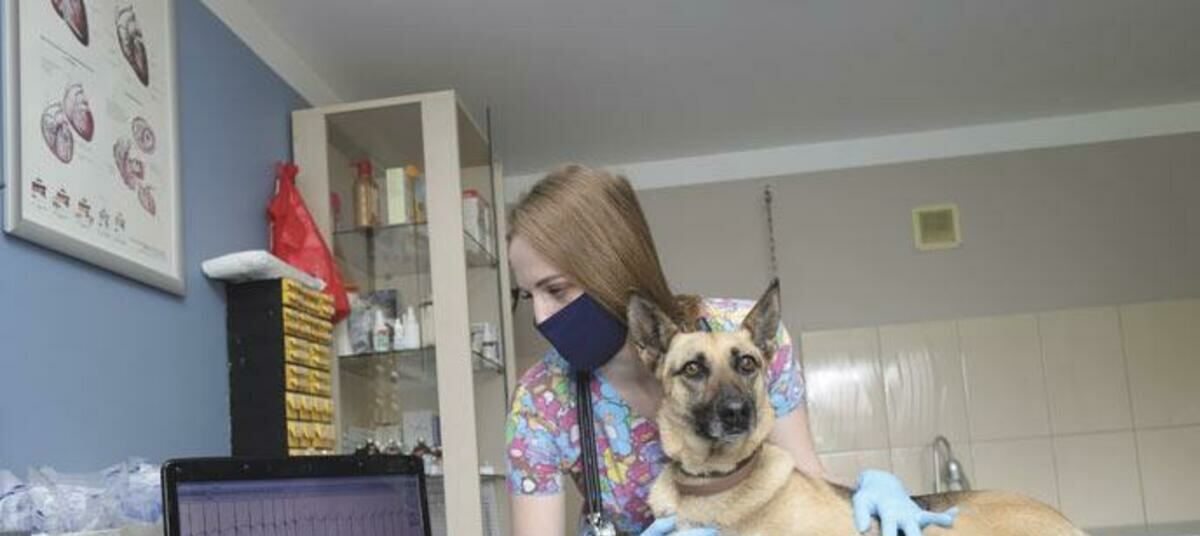 Кардиолог Ветслужбы «Захаров и Фарафонтова» Алина Танана при помощи современного оборудования проверяет, как работает сердце собаки