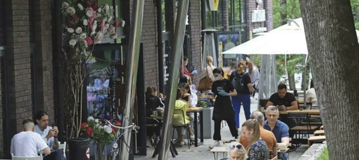На выходных наконец заработали летние кафе. Конечно, обслуживают в масках и перчатках, везде стоят антисептики. Но все же теперь можно не только взять еду на вынос, но и присесть за столик.