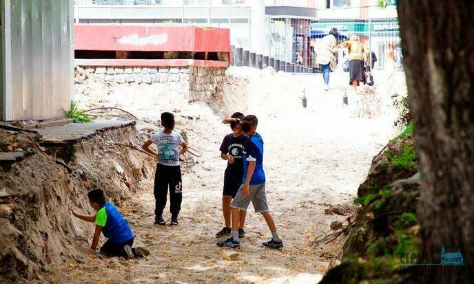 Мы пересекли аллею, где работала строительная техника, и свернули на привычную тропинку. Но не тут-то было: перед нами зияла яма, через которую была перекинута хлипкая дощечка. Отступать некуда: позади экскаваторы и бобкеты "сдвинули полки". Кое-как помогая друг другу, мы дошли до редакции.