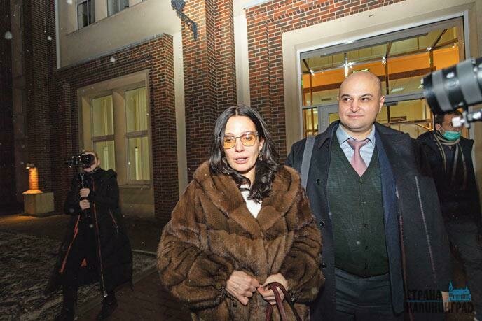 Елена Белая и один из ее адвокатов Тимур Маршани дают интервью возле суда