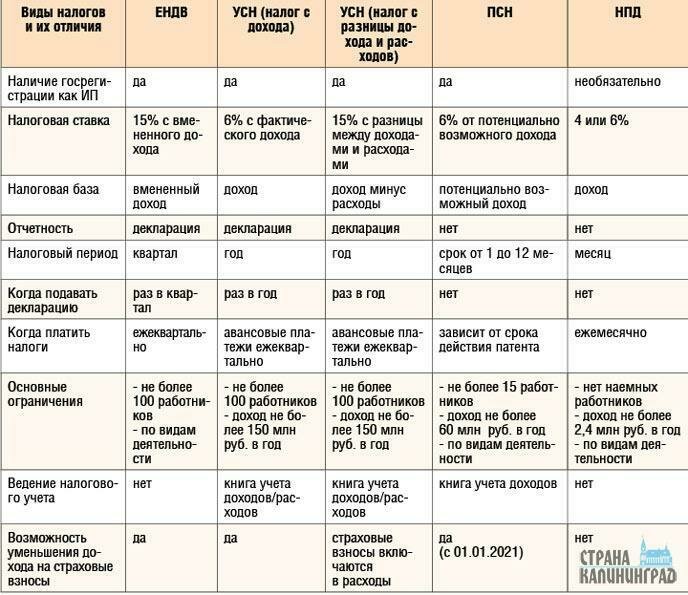Для удобства в табличке сравнили их с ЕНДВ.