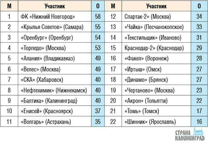 Зато с выезда калининградцы привезли 23 очка – лучше в гостях выступили только три лидера: «Оренбург» (31), «Торпедо» (27) и «Нижний Новгород» (26). Однако в гостях калининградцы провели 15 матчей, а дома только 11.