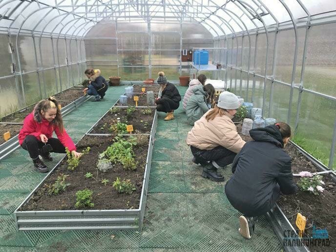 Большой популярностью у школьников пользуется созданный во дворе сенсорный сад и спортплощадка. В местной оранжерее широкие проезды, чтобы любой желающий мог здесь заниматься уроками ботаники и ухаживать за растениями. Также есть слесарно-токарная мастерская. Все это позволяет ребятам, которым, скажем так, не даются точные науки, в разы увеличить часы занятий технологиями, приобретать трудовые навыки. В планах у руководства школы обустроить во дворе еще две природные лаборатории.