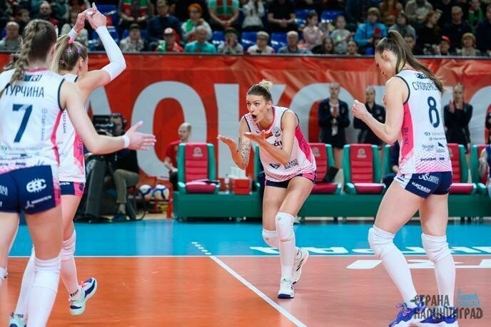 Но и «Протон» с пятой строчки может настигнуть, и «Ленинградка» на третьей позиции теоретически может оступиться. Так что нет смысла расслабляться, тем более что и болельщик не поймёт, и наигрываться к грядущей стадии «плей-офф» самое время. Вот почему за два тура до окончания регулярного чемпионата Суперлиги российского женского волейбола трибуны во Дворце спорта «Янтарный» практически полные и основные игроки на площадке проводят немало времени. Стартовая семерка была смесью «основы» и «резерва»: Алле Галкиной, Юлии Бровкиной и Эбрар Каракурт компанию на площадке с первых минут составили Алёна Кондрашова, Валерия Зайцева и Вера Костючик.