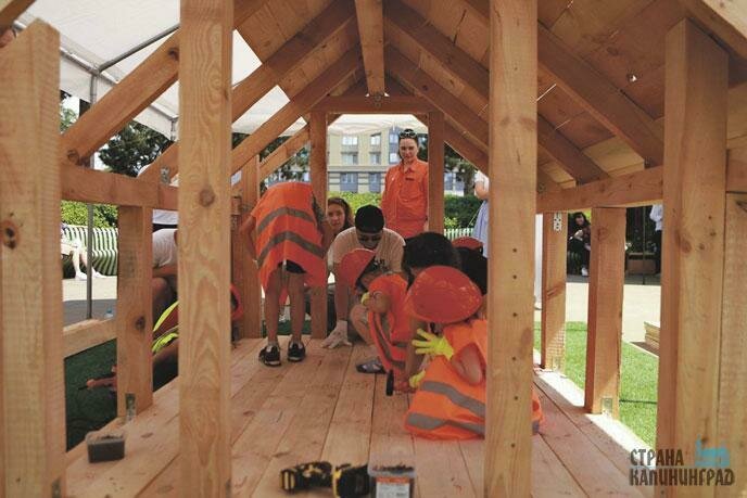 Прямо во время мероприятия был построен с участием самих детей деревянный дом