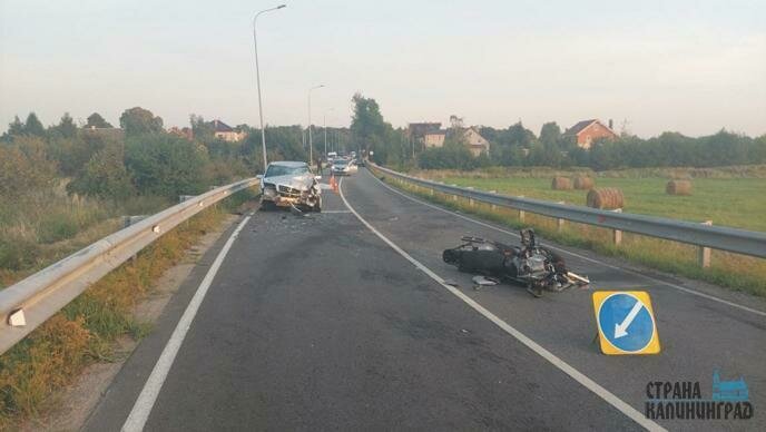 Светловский район. В 8.30 на 18-м км дороги «Калининград - Балтийск» 46-летний водитель мотоцикла «Ямаха», обгоняя автомобиль «БМВ», столкнулся с ним. Он скончался в скорой.