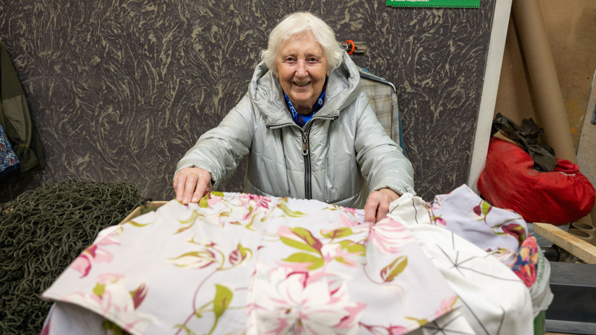 Тамара Васильевна шьёт бельё для бойцов у себя дома, там есть швейная машинка, электрическая. Купили специально, чтобы получалось делать большие объёмы. Много её изделий уходит в госпитали, там такое всегда нужно, так как ребята поступают с ранениями, с них просто срезают всю одежду.