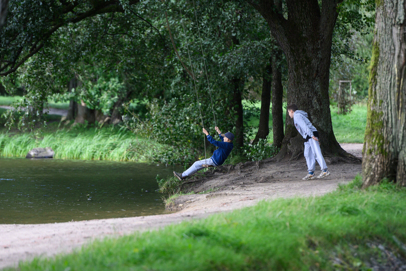 Есть что посмотреть: возле одного из прудов стоят валуны с надписями — они связаны с Первой мировой войной. А ещё в парк перевезли постамент с выбитым орденом Королевства Пруссии и надписью на латыни.