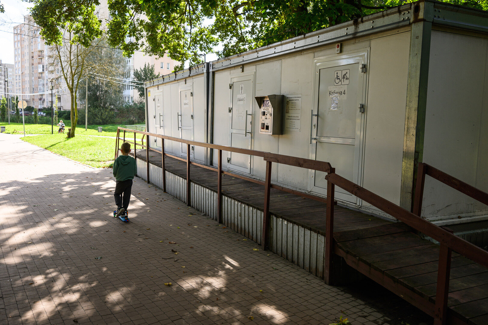 Людей там много: в хорошую погоду на центральной аллее сложно разойтись. Казалось бы, успех! Но есть нюансы. Например, на весь огромный парк только один стационарный туалет (биокабинок нет). Да и тот, как пишут в соцсетях калининградцы, работает редко (мы в этом убедились лично, так и не попав внутрь). Нет в парке и общепита (один маленький ларёк, и недавно поставили круглосуточную автоматическую мини-кофейню). Несмотря на огромное количество собачников, здесь нет специальных урн.