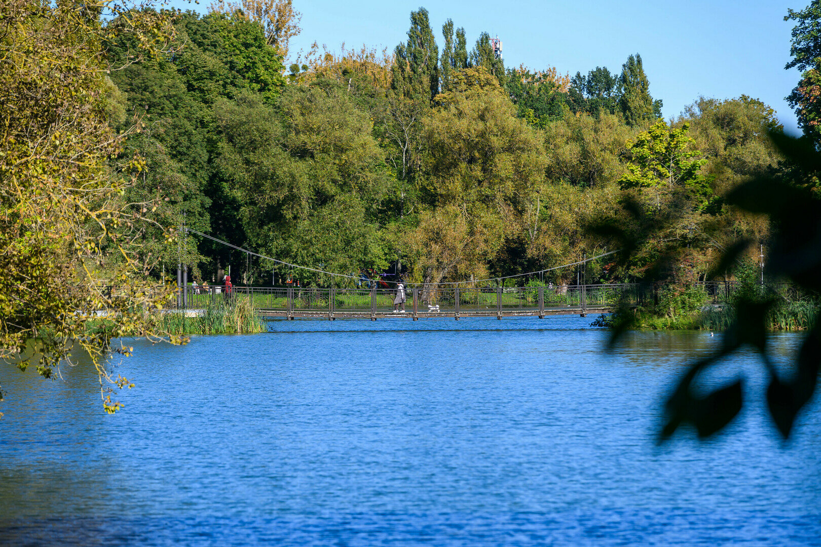 Занялись парком уже в 2000-х: сначала горадминистрация получила грант Евросоюза — на него сделали санитарную рубку, берегоукрепление каналов. А в 2022 году парк им. Макса Ашманна победил в голосовании и стал одним из мест, которые благоустроили по программе «Комфортная городская среда». Там появились мощёные дорожки и велополосы. Около водоёмов (всего их там четыре) теперь можно посидеть — лавочек и мусорок вообще поставили много. Освещение позволяет гулять даже вечером.