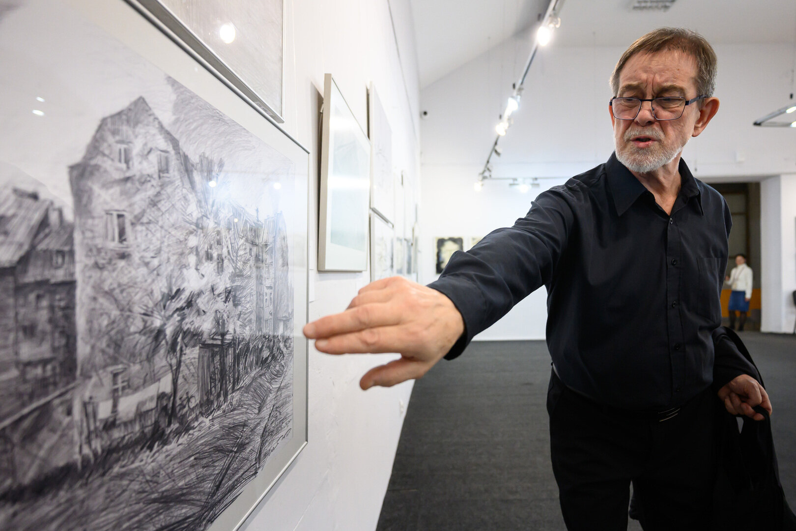 Центральным событием «Ночи искусств» стала юбилейная выставка калининградского художника Михаила Матвеева «Окна в мир» (0+). Михаил Матвеев — настоящий волшебник карандаша и туши. Его чёрно-белые картины словно тихая, глубокая музыка, которую слушаешь, затаив дыхание. Он видит красоту там, где мы, кажется, привыкли не замечать: в обычных дворах, старых улицах, туманных далях.