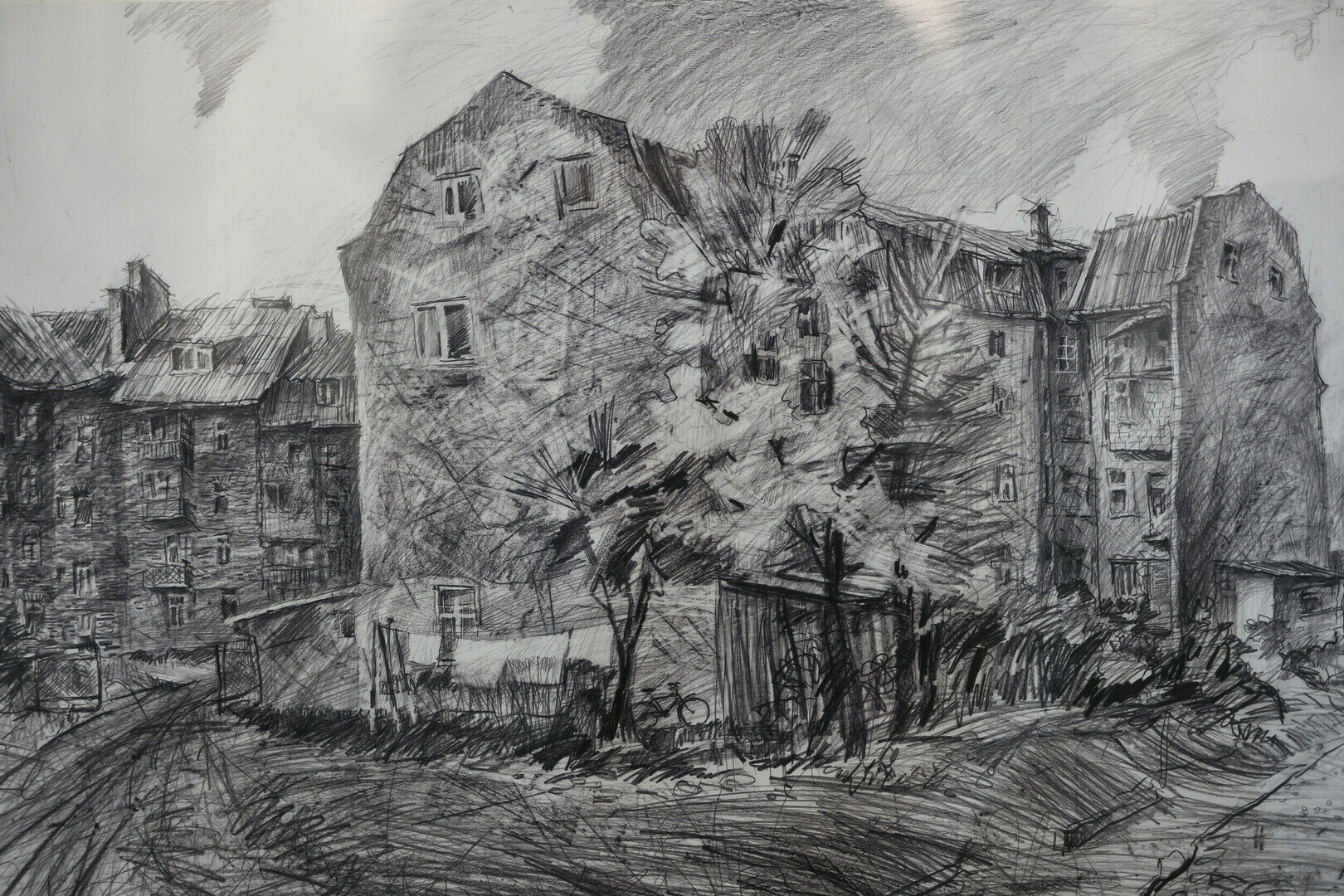 — Старый дом — это как портрет очень древнего человека, — рассказывает Михаил Александрович об одной из таких работ — вековом доме на ул. 9 Апреля в Калининграде, который готовился к сносу. — Он весь в морщинах, как люди, весь в старой штукатурке, старые окна еле-еле живы. Жильцы этого дома уже переселены. А их бельё, которое сушилось в тот день, навсегда на этой картине. Жительница дома, когда я рисовал, подошла и попросила эту работу на память. И через какое-то время я сделал для неё копию картины.