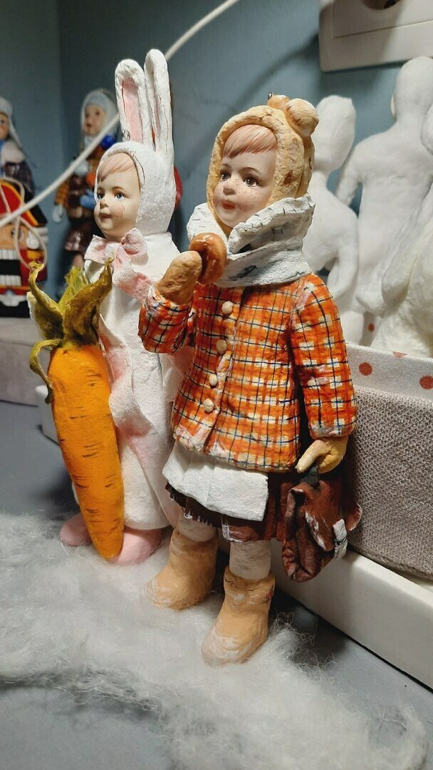 Используется хлопковая и льняная вата, крахмальный клейстер. Игрушки расписаны вручную, акриловыми красками и покрыты лаком для долговечного пользования, миниатюры выполнены собственноручно из ваты, бумаги и картона.